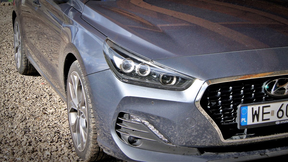 Do napędu i30 można wybrać albo silnik benzynowy 1.6, albo diesla o tej samej pojemności. W samochodzie testowym znalazła się jednostka wysokoprężna o mocy równych stu kilowatów, czyli 136 koni mechanicznych. Sprzężono ją z dwusprzęgłową skrzynią DCT7, własną konstrukcją Hyundaia. Ten zestaw absolutnie wystarcza do napędzenia samochodu, potrafi też zadowolić się niewielkimi dawkami paliwa – zużycie poniżej sześciu litrów to norma przy łagodnej jeździe. Ale uwaga – w trybach Eco i Normal skrzynia potrafi za długo pozostać na wysokim biegu, redukuje niechętnie i w efekcie zdarza się, że silnik podnosi się z obrotów poniżej wartości momentu obrotowego. W trybie Sport za to nie ma mowy o redukcji poniżej dwóch tysięcy obrotów, przełączanie na wyższy bieg także odbywa się dużo później. Daje to, oczywiście, dużo lepszą dynamikę, choć czasami z kolei skrzynia trzyma na niższym przełożeniu zbyt długo. Nie jest to żadnym problemem, bieg można w każdej chwili zmienić łopatkami przy kierownicy. Z tym, że jeśli oprogramowanie uzna, że zrobiliśmy to za wcześnie, i tak wybierze przełożenie, które uzna za najlepsze. Mimo to przy normalnej jeździe manualna zmiana może służyć raczej do zabawy. Tryb sportowy zresztą niewiele zmienia w zużyciu paliwa, u mnie zwiększyło się o mniej niż pół litra.