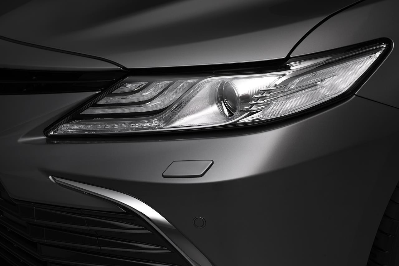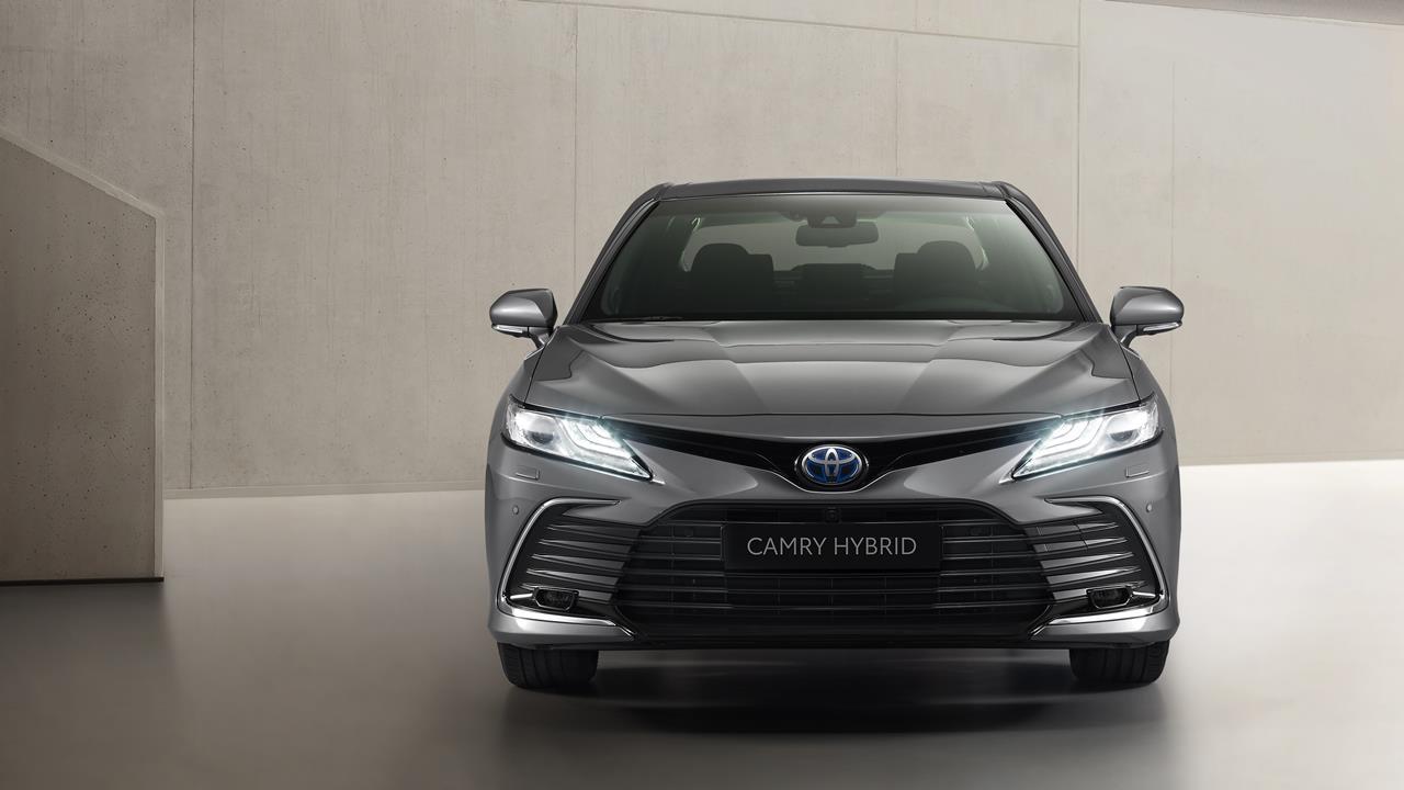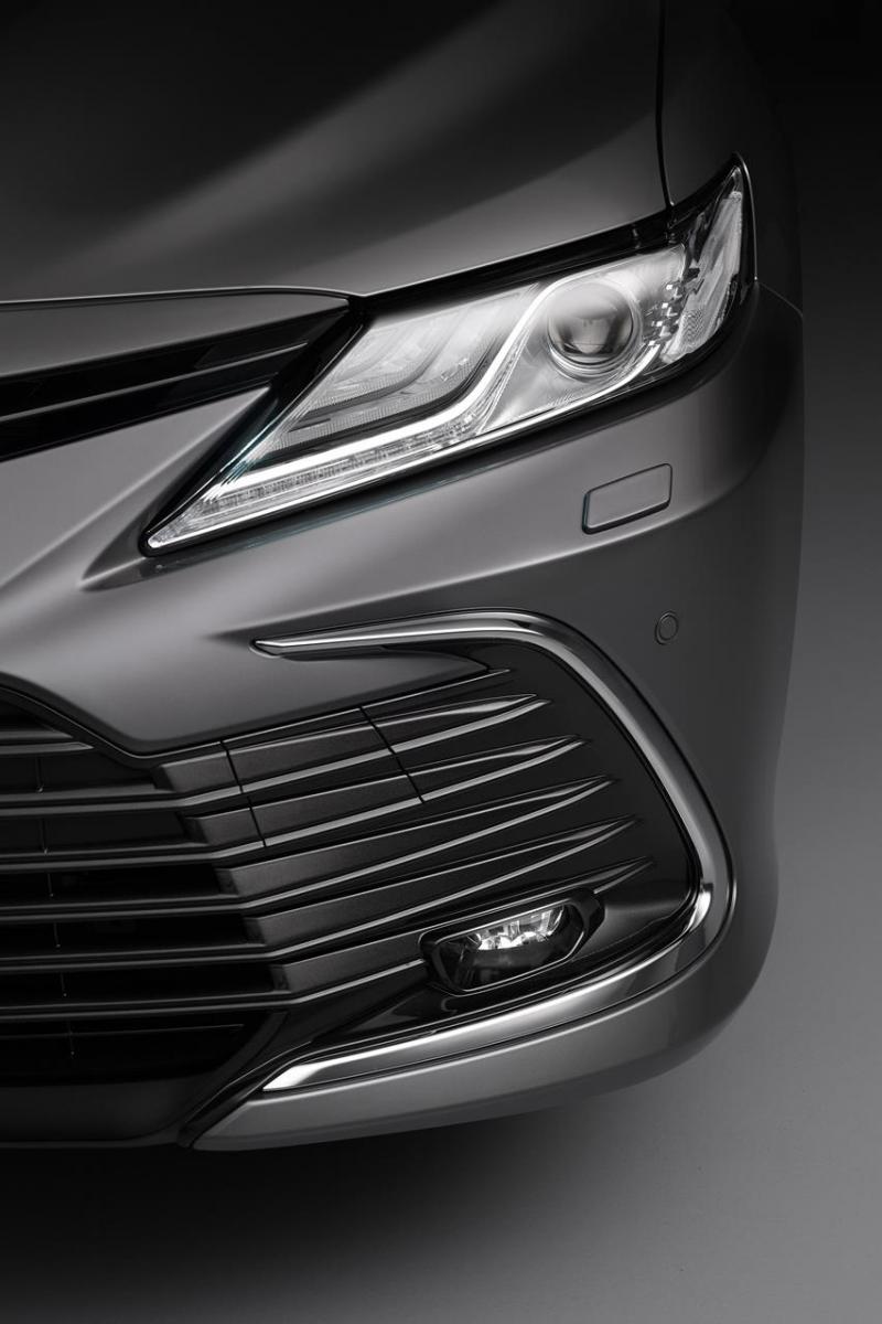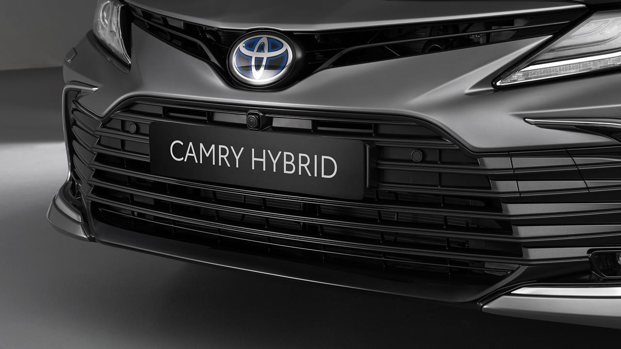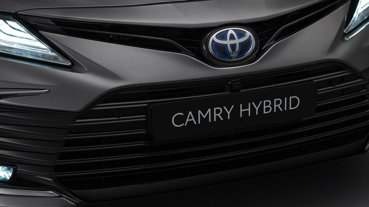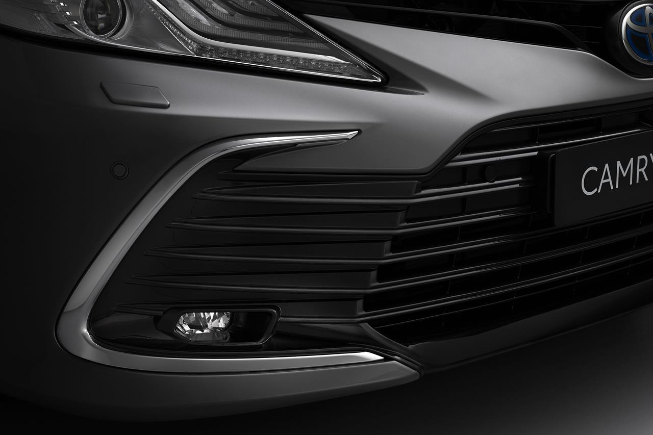 Hybrydowa Camry otrzymała nowy przedni zderzak oraz nowy projekt górnego i dolnego grilla, dzięki którym wygląda nowocześniej i bardziej stabilnie. Dolny grill może być wykończony w kolorze czarnym lub ciemnoszarym, natomiast na jego brzegach pojawiają się detale w kolorze chromowanym lub srebrnym.