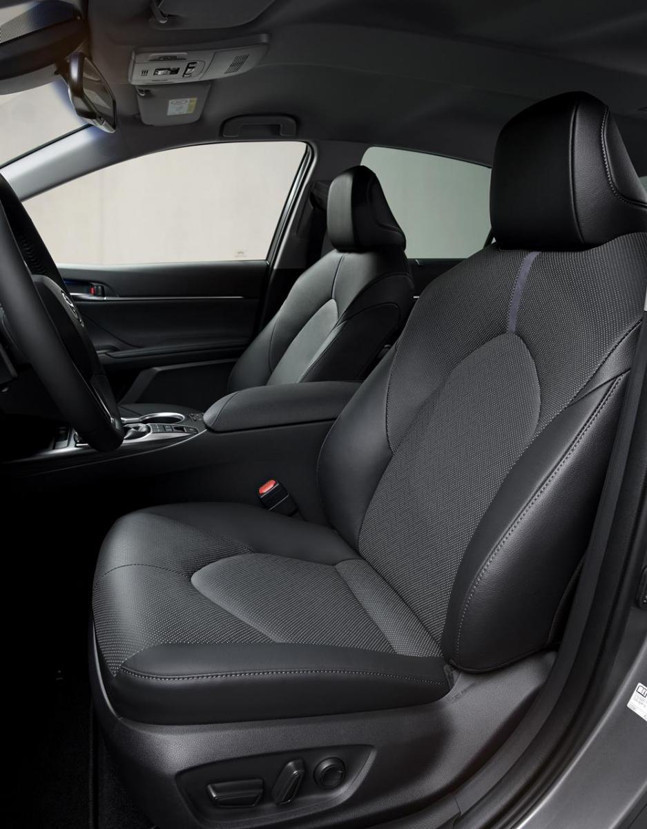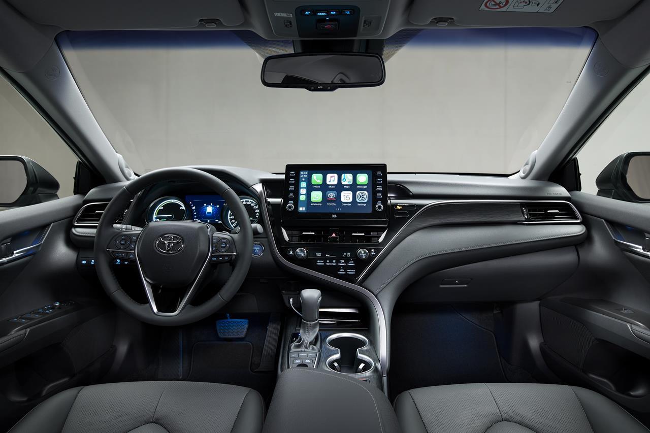 Wnętrze auta od początku cechuje się komfortem i przestronnością, w szczególności na tylnej kanapie. Teraz kabina zyskuje nową kolorystykę i wykończenie wnętrza, większy, wyżej zamontowany ekran dotykowy 9″ oraz lepsze systemy łączności. Najnowszy pakiet bezpieczeństwa czynnego Toyota Safety Sense zawiera wiele nowych lub udoskonalonych funkcji. Dzięki nim Toyota Camry staje się bezpieczniejsza niż kiedykolwiek.