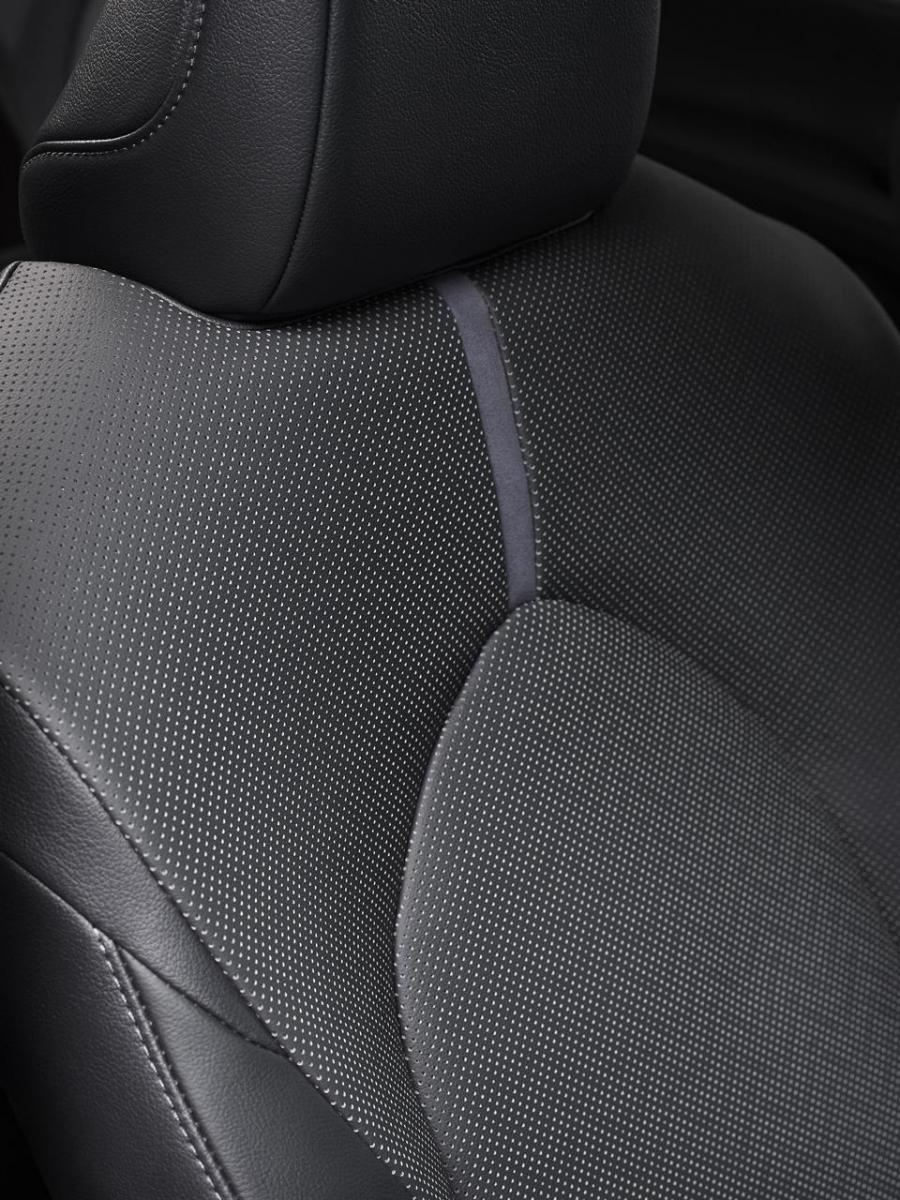 Do wyboru są dwie skórzane tapicerki klasy premium w kolorze czarnym i beżowym. Są one zdobione stylowymi perforacjami, które dodatkowo umożliwiają wentylację siedzeń. Dostępna jest także zupełnie nowa czarna tapicerka ze sztucznej skóry z materiałowymi wstawkami.