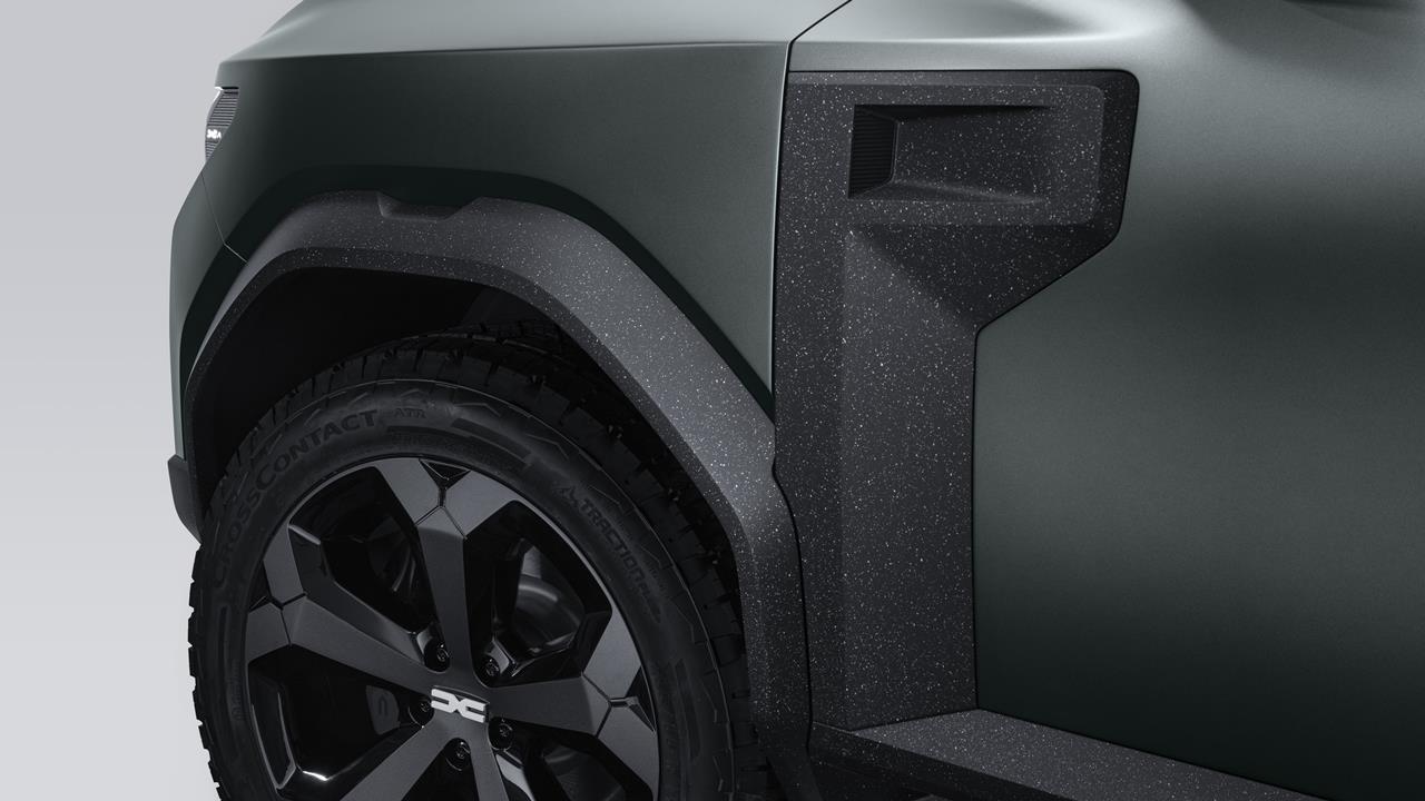 Ciemnozielony kolor nadwozia podkreśla także zamiłowanie do otwartych przestrzeni i przygody. Ten duch wolności jest bardzo typowy dla DNA marki. Nie potrzeba zbędnych atrap i gadżetów, chromu czy materiałów udających aluminium. Bigster Concept to kwintesencja autentycznego SUV-a, który zdecydowanie stawia na wykorzystanie surowych tworzyw z recyklingu. Widać to np. we wszystkich osłonach i zabezpieczeniach nadwozia.