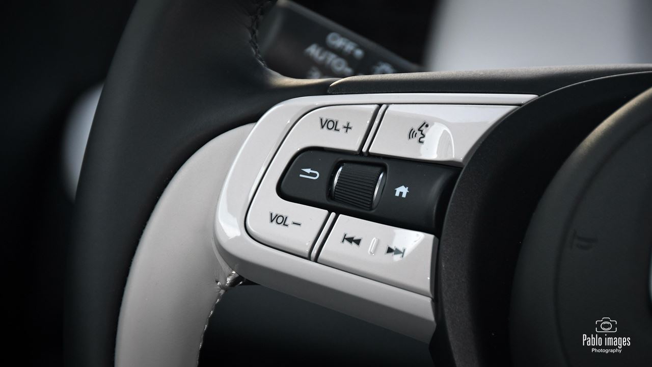 Wewnątrz natomiast Honda Jazz urzeka prostotą, po której widać, jak bardzo przemyślany jest to projekt. Wszystko jest maksymalnie proste, nie ma żadnych zbędnych ozdóbek ani połaci lakieru „piano black”. Odwrotnie, tam, gdzie u innych byłby czarno, w Jazzie jest biało. To też jest błyszczący plastik, ale wygląda o niebo lepiej. Dwuramienna kierownica pochodzi z modelu Honda e (małe e) i jest naprawdę bardzo wygodna. Za nią niewielki wyświetlacz z podstawowymi danymi, do tego ekran centralny obsługujący multimedia, nawigację i ustawienia. Pod ekranem normalne pokrętła sterujące klimatyzacją, a na tunelu środkowym, poza dźwignią wyboru przełożeń, przyciski elektrycznego hamulca postojowego i trybu „eco”. Tylko tyle, więcej nie potrzeba. Są oczywiście wejścia USB i gniazdko 12V, a w rogach deski rozdzielczej wygospodarowano miejsce na cupholdery.