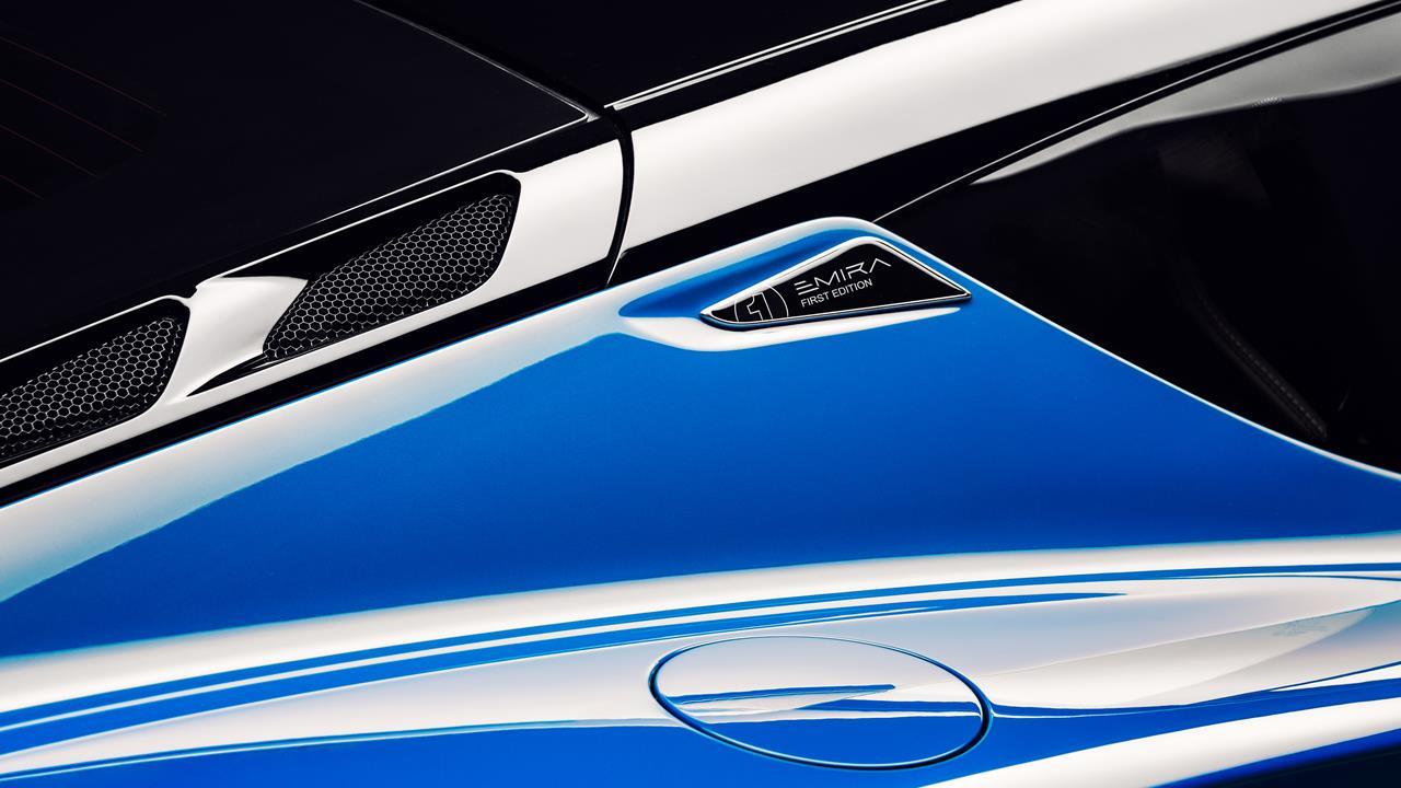 W całej gamie Emiry moc silnika w momencie premiery będzie wynosić od 360 do 400 KM, przy przyspieszeniu od 0 do 100 km/h w mniej niż 4,5 sekundy i prędkości maksymalnej do 290 km/h. Maksymalny moment obrotowy wyniesie 430 Nm, a emisja CO2 wyniesie od poniżej 180 g/km. Samochód ma docelową wagę 1405 kg w najlżejszej wersji. Ceny zaczynają się od poniżej 60 000 funtów (poniżej 72 000 euro), czyli około 315 tysięcy złotych.